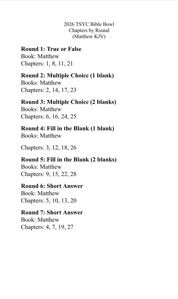 This book of the bible for 2026 Bible Bowl is Matthew (KJV).